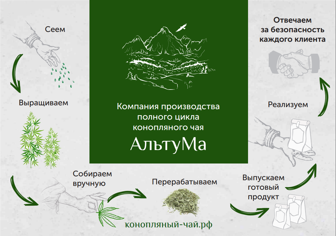 Наше предприятие выращивает уникальный легальный конопляный чай, который вобрал в себя все самые полезные свойства этого уникального, сильного и незаслуженно забытого растения.